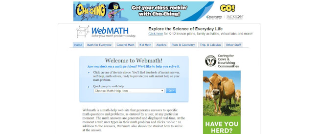 Webmath is one of the best site which is designed for those who hate math. Most students hate Math, Algebra and Geometry. This site will teach the most difficult math concepts in an easy way. Whether it is a Geometry proof or Algebraic equations, you can find an answer to every question on this website. Math will sound more interesting with the latest learning techniques on Webmath.com website. The students will understand every math concept in a better manner.